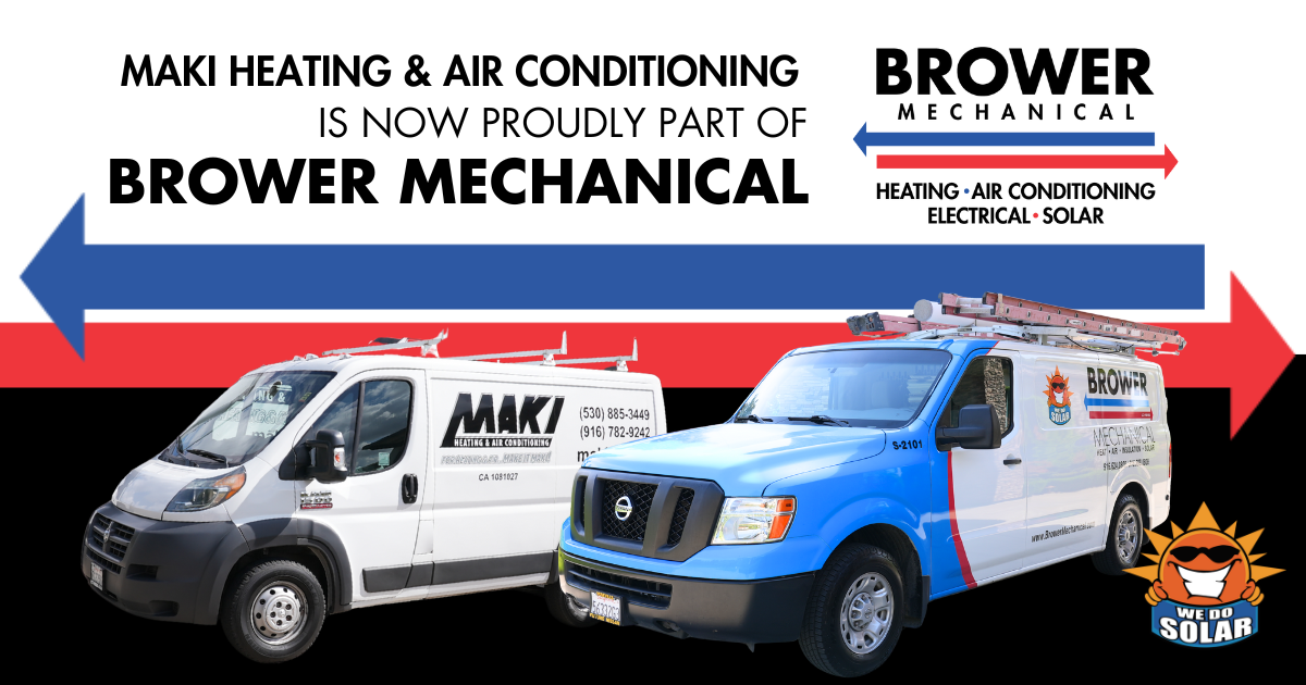 We’re thrilled to share some exciting news! Maki Heating & Air Conditioning has officially become part of Brower Air Conditioning, Heating, Electric, & Solar—combining two local leaders who share the same passion for outstanding service and customer care. While the name is changing, our commitment to the trusted service you’ve relied on remains as strong as ever. Brower Mechanical has proudly served the Sierra Foothills since 1979 with heating, air conditioning, electrical, solar, water heater, and home performance solutions.