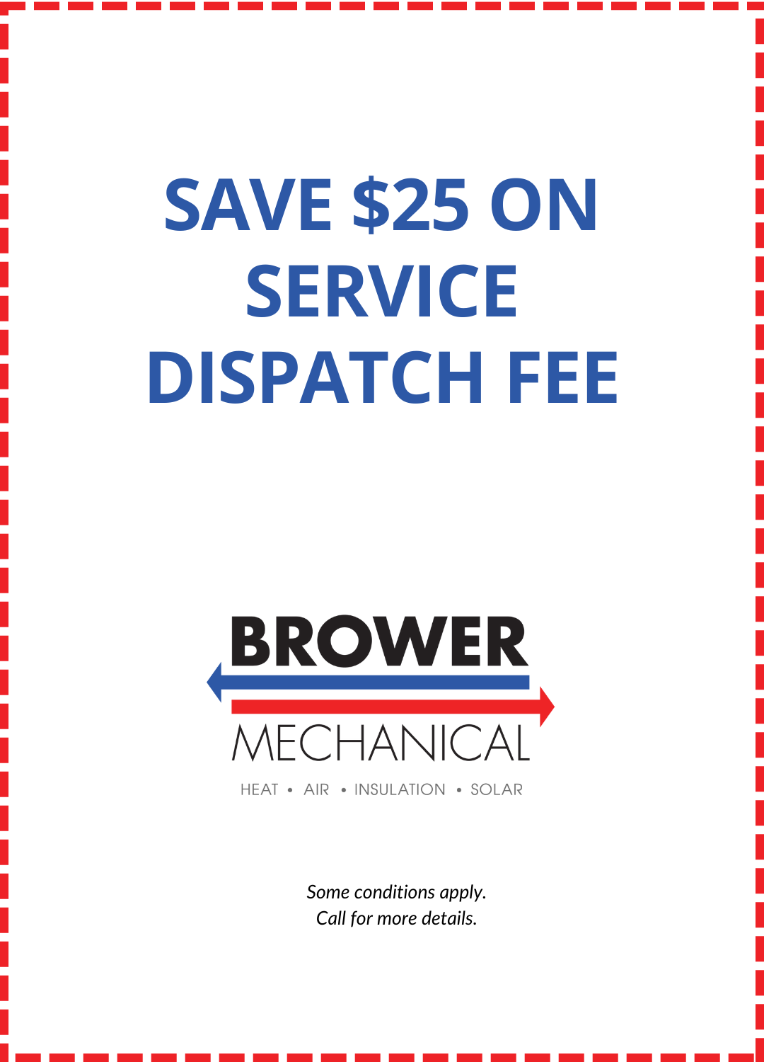 Service is important for every home system, and Brower Mechanical is your go-to provider. You can save $25 on the dispatch fee for diagnostic service by calling us today! Ask for details. This discount is not good with any other offer. The offer is only valid when you mention this ad while booking the appointment with one of Brower's authorized call center representatives.